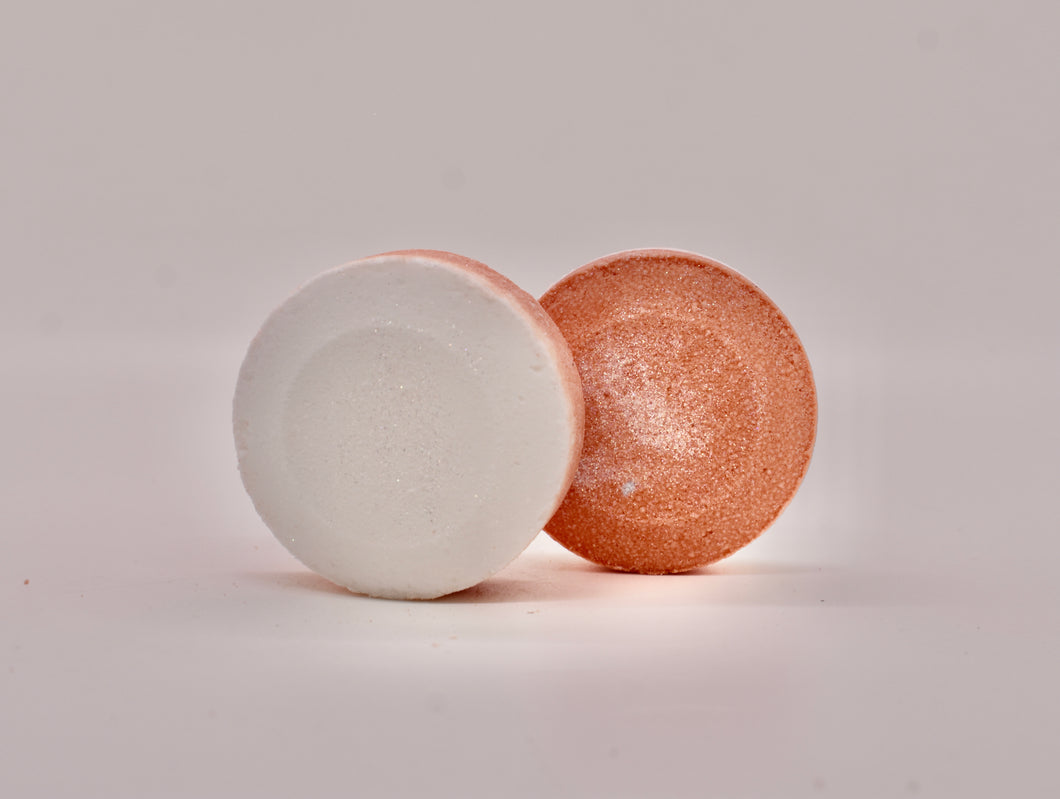 Set one of our Shower Bombs on the side or bottom of your shower, and watch it dissolve as the water runs!  Lasts one use, just leave in the shower and allow to disperse naturally!
